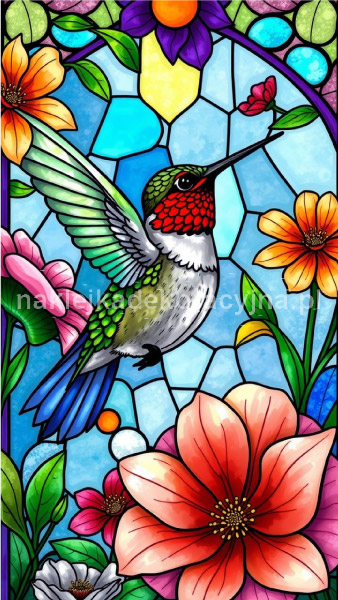 Naklejka w formie witrażu drukowana na wysokiej jakości folii matującej ORACAL - piaskowane szkło, które jest przeznaczone do aplikacji zarówno wewnątrz, jak i na zewnątrz pomieszczeń, a także jest odporne na warunki atmosferyczne.